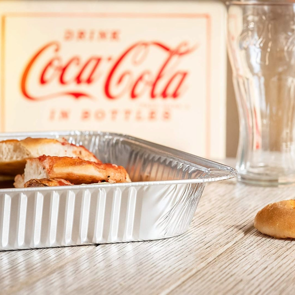 Prodotte in alluminio alimentare di alta qualità, garantiscono resistenza, igiene e praticità, risultando ideali per l’utilizzo quotidiano nel settore della ristorazione e del take-away.