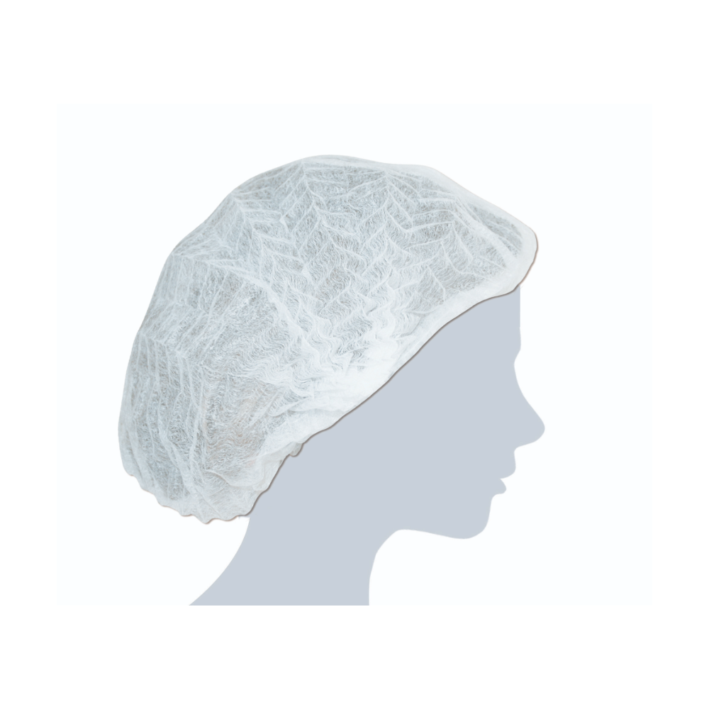 Cuffia per capelli in TNT monouso a fascia elastica, idrorepellente e traspirante.