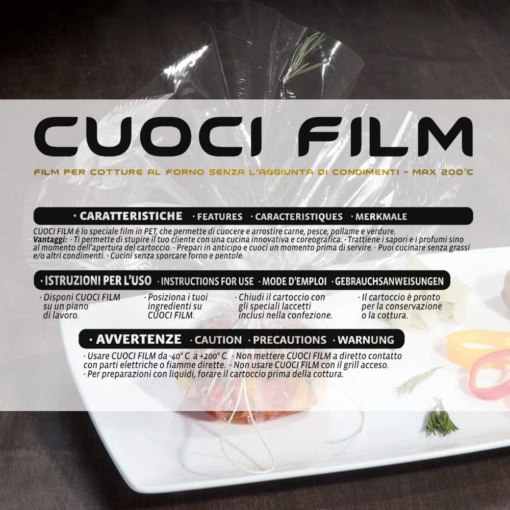 Il Cuki Cuoci Film è un innovativo film in PET che consente di cuocere carne, pesce, pollame e verdure in modo sano, senza aggiunta di grassi. Trattiene i sapori e i profumi, garantendo piatti sempre deliziosi. Utilizzabile da -40°C a +200°C, è perfetto per una cucina pratica e sicura.
