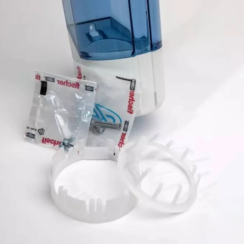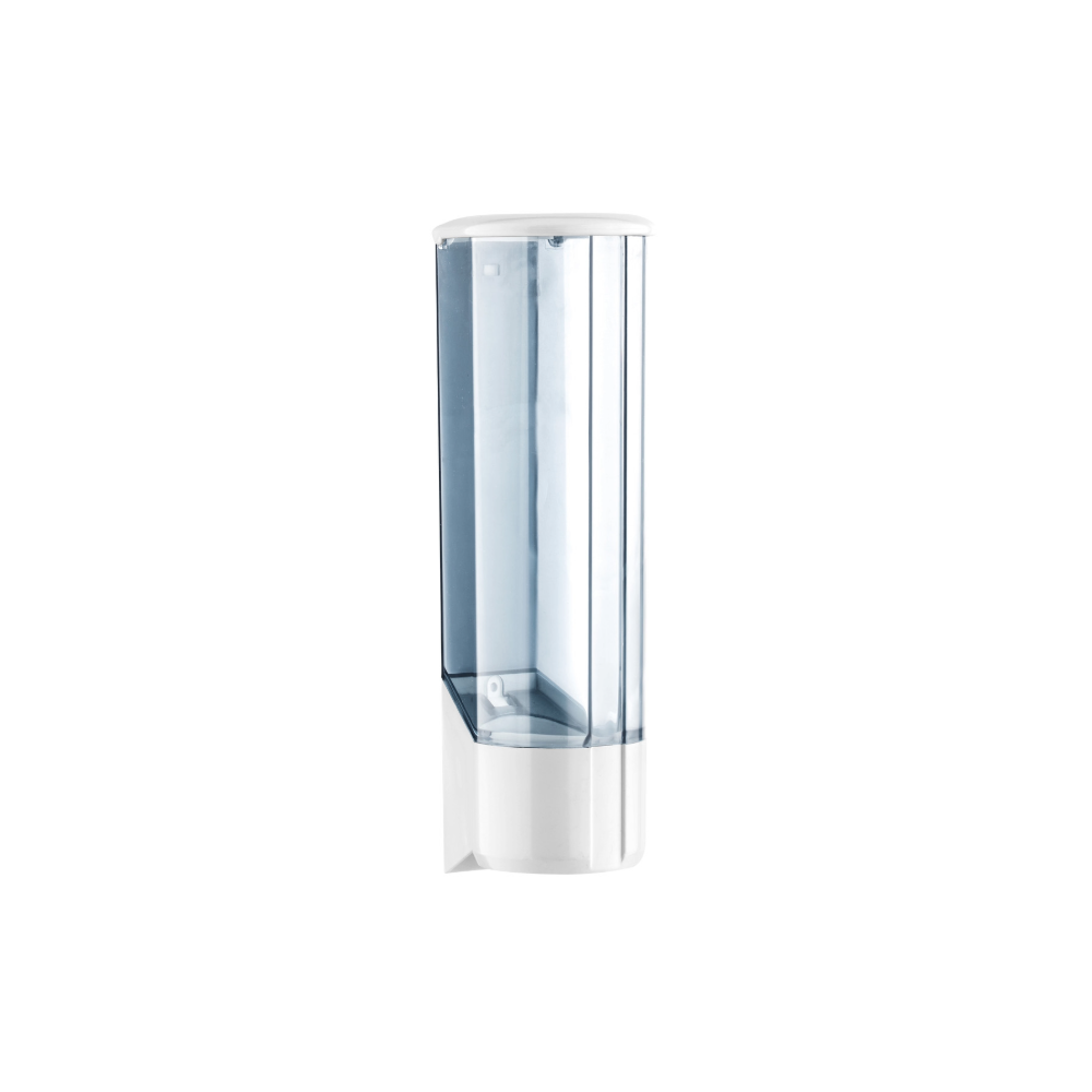 Dispenser da muro per bicchieri in plastica. Contiene fino a 50 bicchieri per bibita e fino a 70 bicchierini caffè con l’apposita riduzione. All’interno della confezione vengono forniti nr. 2 accessori:- una ghiera sostitutiva per bicchiere da bibita, con diametro max esterno di 73 mm.; una ghiera aggiuntiva per bicchierini da caffè, da applicare sulla ghiera da bibita. Fornito con viti e tasselli. Realizzato completamente in Italia con materiali di elevata qualità.