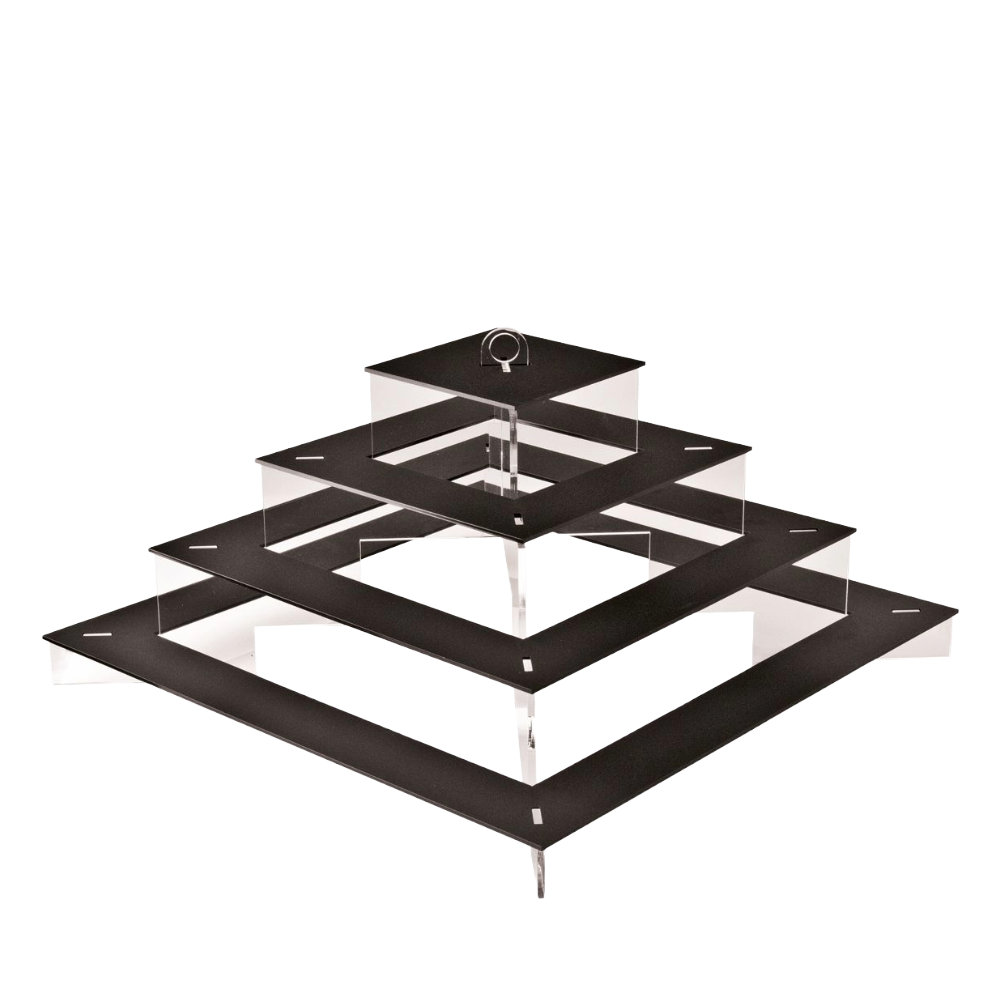 Perfetto per buffet, catering e presentazioni finger food, questo espositore in PMMA nero coprente dona eleganza e modernità a qualsiasi allestimento, creando alzate e livelli scenografici di grande impatto visivo.