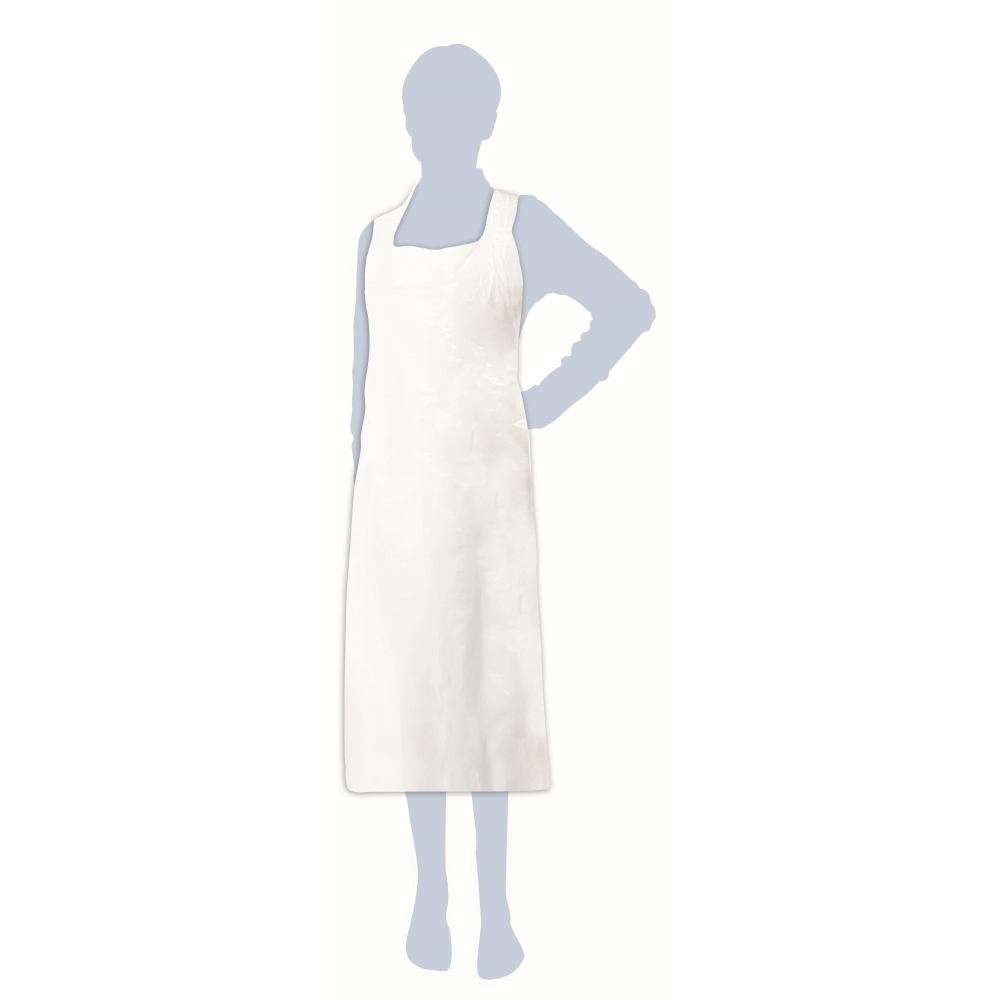 Grembiule in LDPE con superfice goffrata, impermeabile e dotato di appendino .