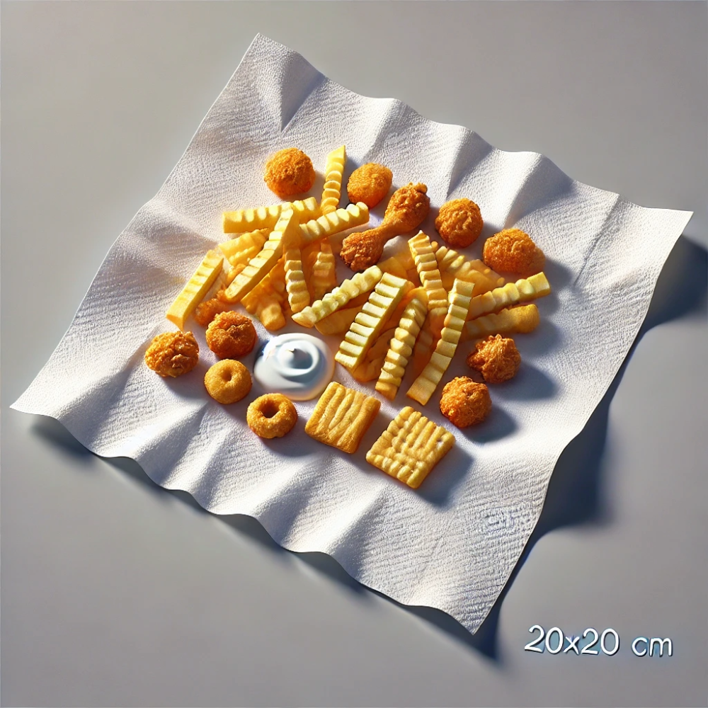 Panno monouso in Airlaid (carta a secco) per fritti monouso. Al tatto è leggermente goffrato.