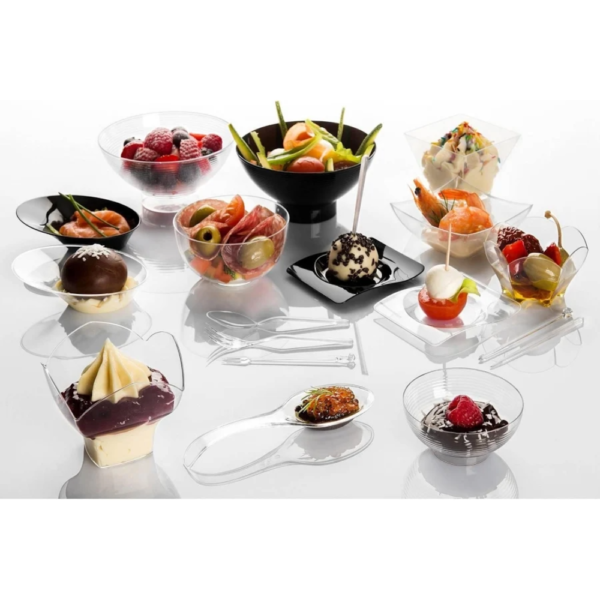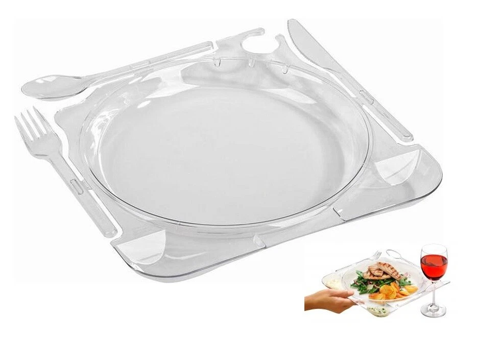 Il piatto porta bicchiere è grande internamente circa 20 x 20 cm ed è in plastica ABS, adatta per tutti gli alimenti. E’ un piatto di media grandezza adatto per buffet, aperitivi, cocktail e cene all’aperto, catering per eventi, feste in barca o in campagna, pool party. Se i punti per poggiare il piatto durante una conversazione scarseggiano, questo piatto con portabicchiere sarà un valido aiuto per iutti i commensali. Elegante, dal colore trasparente che si adatta a tutti gli eventi, pratico grazie al foro porta bicchiere, utile per i bicchieri con flute, oppure alla scanalatura dove potrai appoggiare il semplice bicchiere in plastica. Questi piatti per aperitivo con portabicchiere sono resistente e riutilizzabili, se igienizzati dopo l’utilizzo; perfetti per chi organizza catering e cene raffinate.