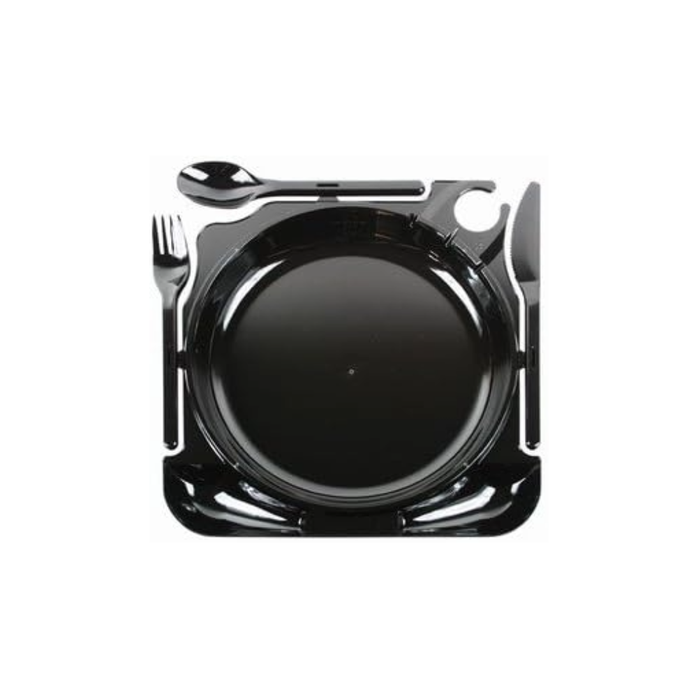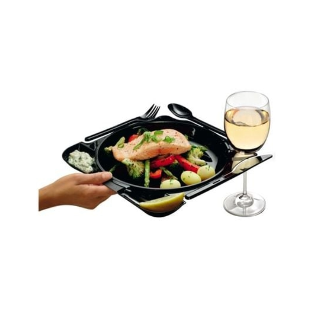 Piatti Rigidi Durevoli con Portabicchiere e Posate CaterPlate all-in-one-10pz