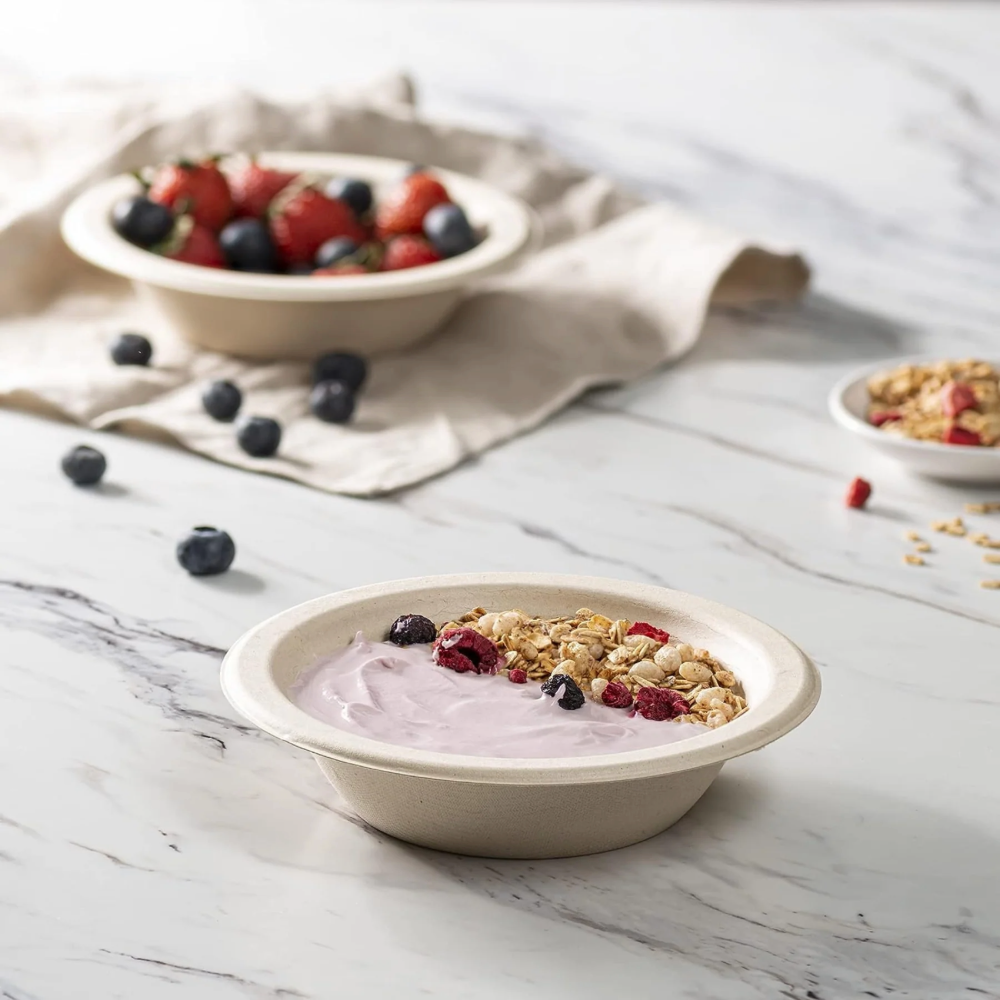 Piatti fondo in polpa di cellulosa da 680 ml, resistente e biodegradabile. Perfetto per zuppe, primi e pietanze calde o fredde. Ideale per catering, ristorazione, eventi e uso domestico. Confezione da 50 pezzi.