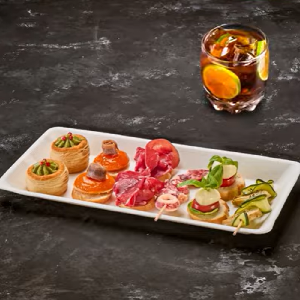 Un vassoio monouso di qualità superiore, sicuro, naturale ed esteticamente perfetto per valorizzare ogni tipo di pietanza.