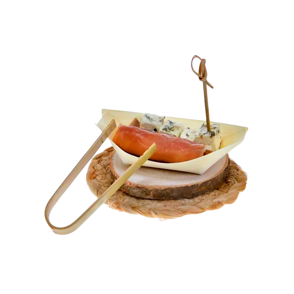 Le Pinze in bamboo da 8 cm, conosciute anche come pinze sushi, sono accessori monouso pratici ed eleganti, ideali per il servizio e la presa di piccoli alimenti. Realizzate in bamboo naturale, rappresentano una soluzione ecologica, igienica e funzionale per il settore food e per eventi di qualità.