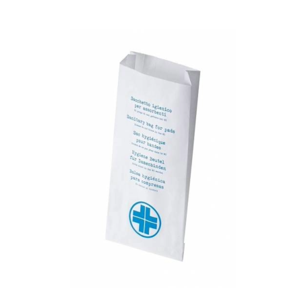 Sacchetto igienico in carta bianca progettato per garantire discrezione e igiene in ambienti pubblici e privati. Realizzato con materiali di qualità, offre resistenza e praticità d’uso. Utilizzato principalmente in bagni di ristoranti, hotel e uffici, assicura un’adeguata gestione dei rifiuti personali, contribuendo a mantenere pulizia e ordine. Per uso Linea Cortesia hotel, Ristoranti, bar, uffici con descrizione in tutte le lingue