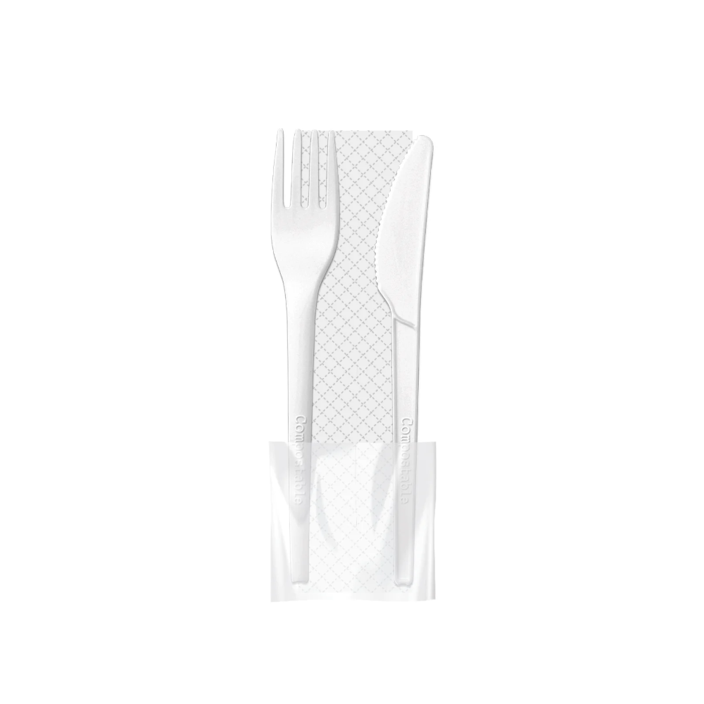 Bis Posate Monouso in CPLA con Tovagliolo 33/2v – 100 Pezzi
