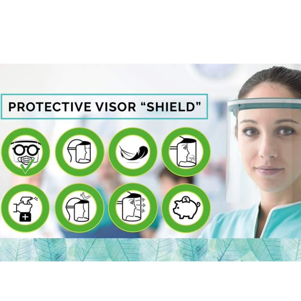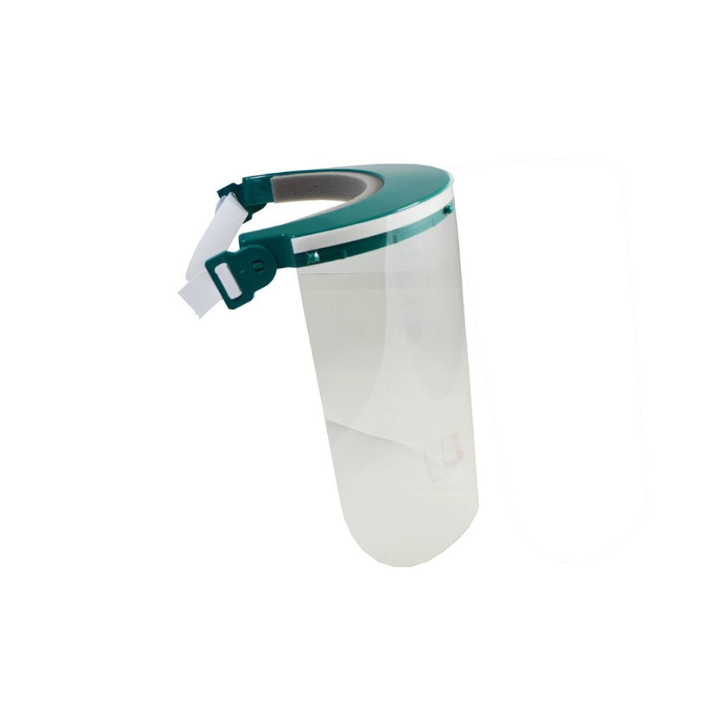 VISIERA PROTETTIVA SHIELD MASK PP PET-TEAL GREEN TRASPARENTE 1 KIT X 2 VISIERE-25pz